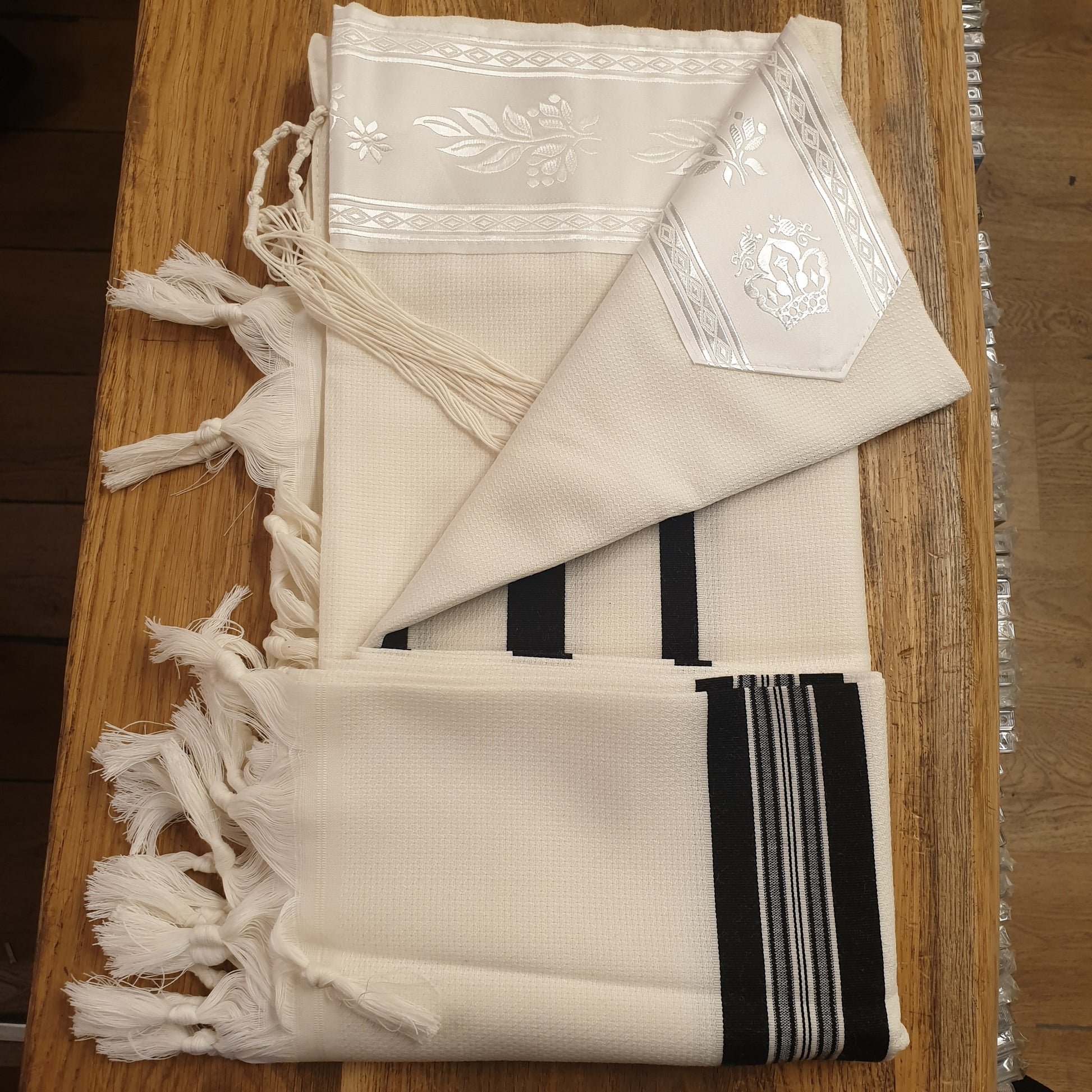 צמר איכותי ארוג ומפואר מאוד בסגנון תשבץ טלית איכותית מאוד כשרה למהדרין מפוארת ומתאימה לחתנים